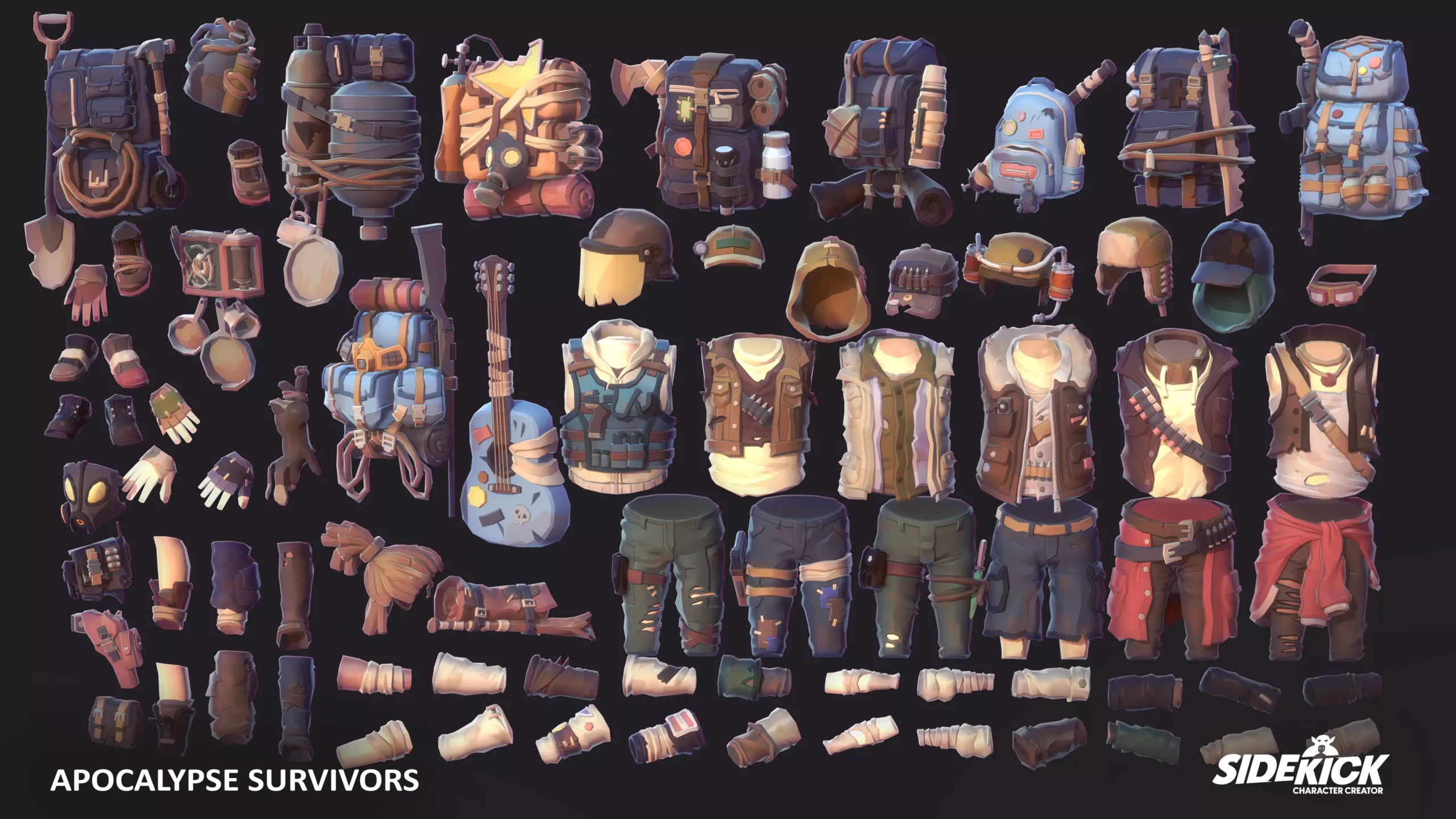 - 70+ modular, rigged Apocalypse Survivor parts (clothing, gear and more)