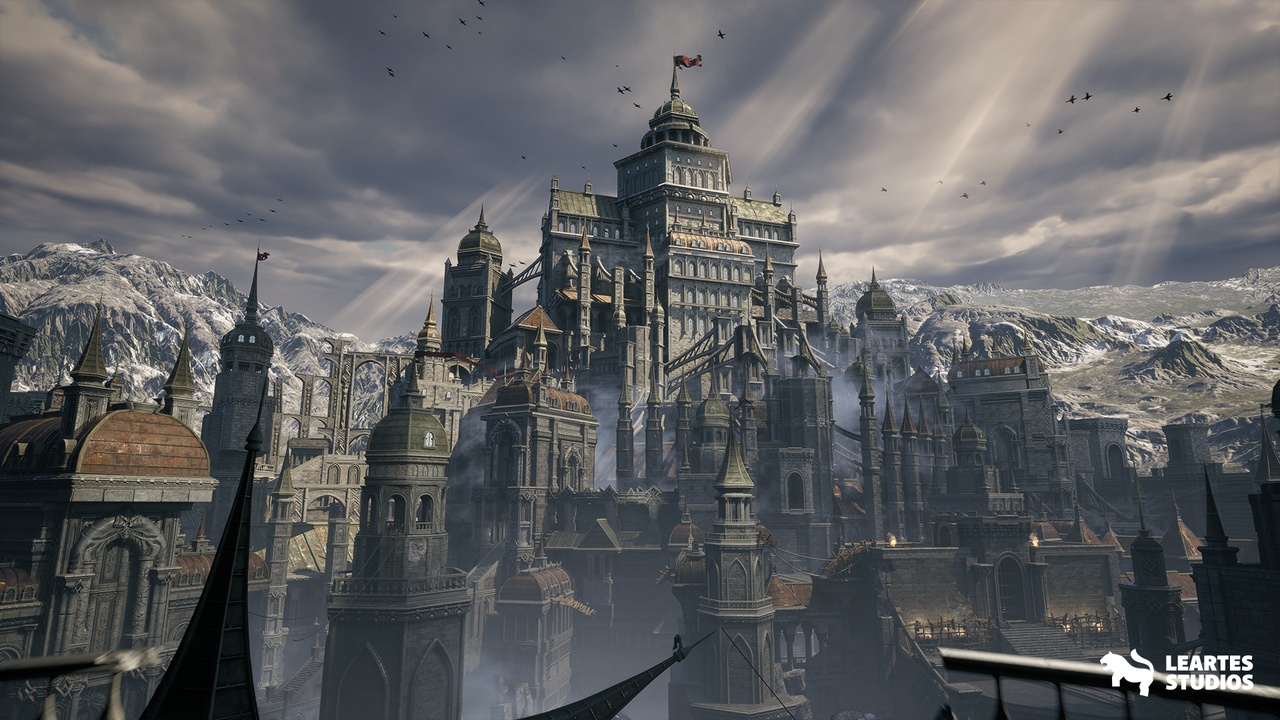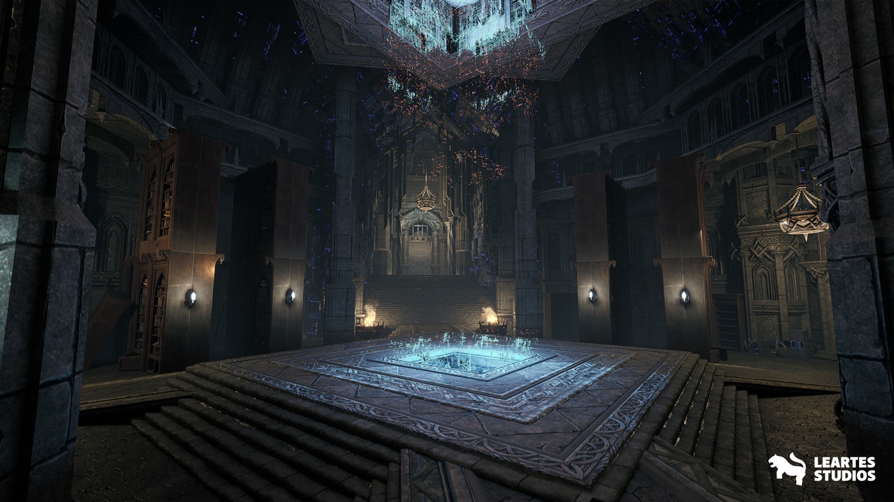 Surrounded by a soul-lake and perched on a crumbling peninsula, this aging Dark Fortress hides untold secrets in its dungeons. Many have reclaimed the collapsing castle over time. Weapons sit with precarious footing, amongst signs of an ancient siege.