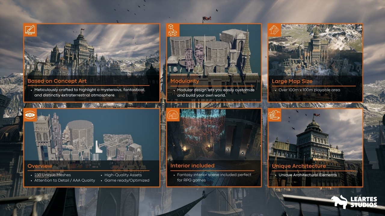 Build out your project’s eerie world quickly with this multi-level, sprawling keep. The medieval castle is crawling with a variety of cursed chambers, decaying dungeons, a forgotten crypt, and more.