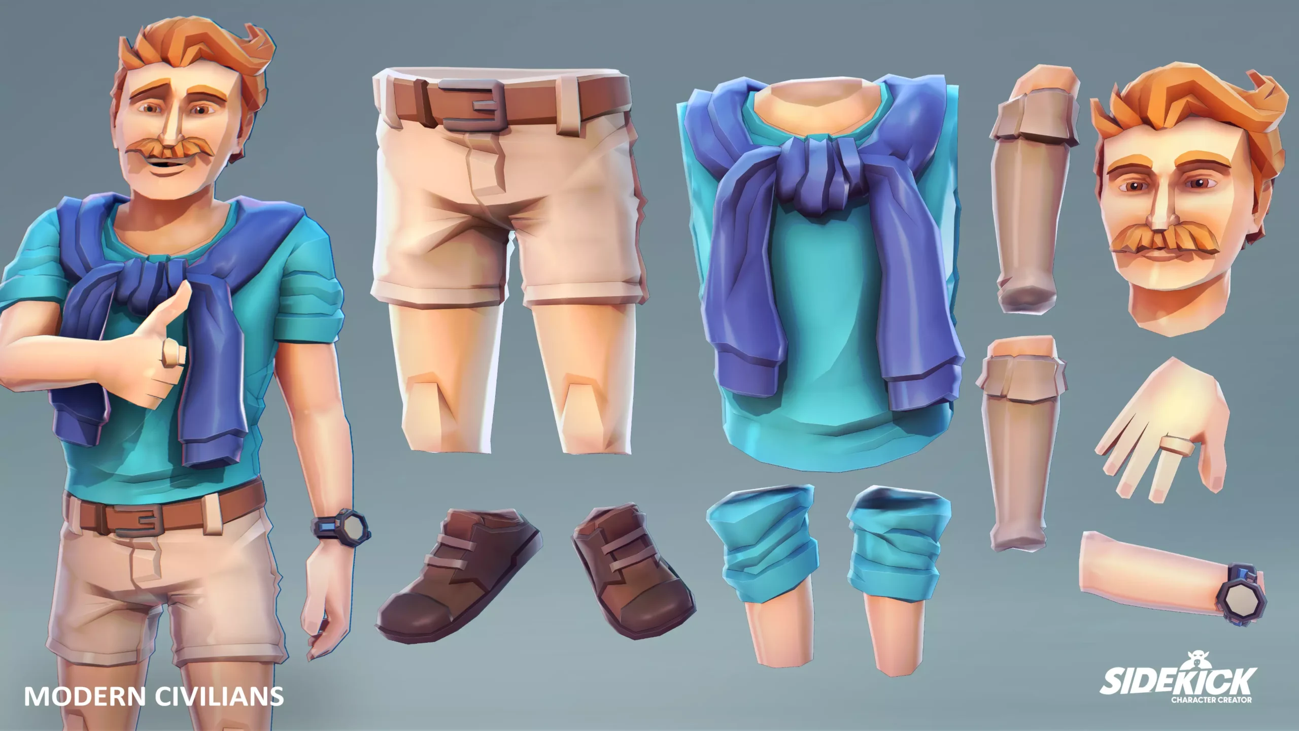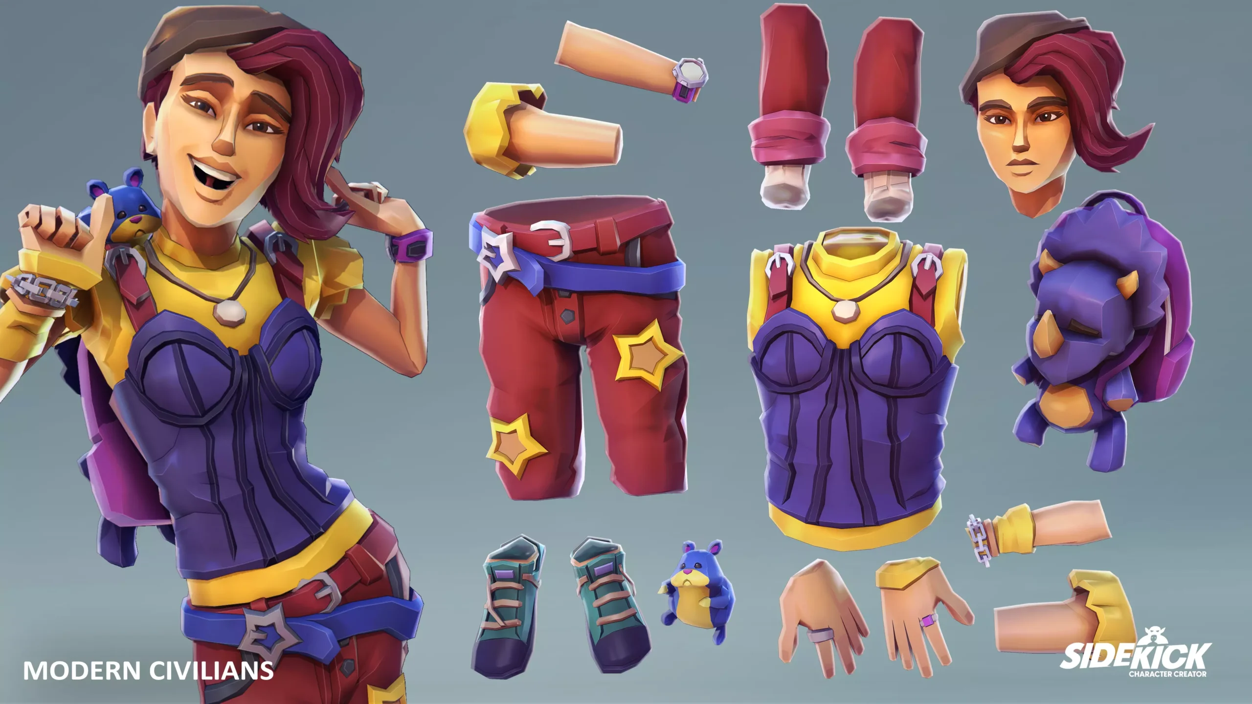 This Sidekick content pack puts a variety of vibrant, everyday people into your character creation locker. Fill your modern game world with people utilising 160+ new parts including clothing, hair styles, backpacks, accessories and 90+ human species base parts.