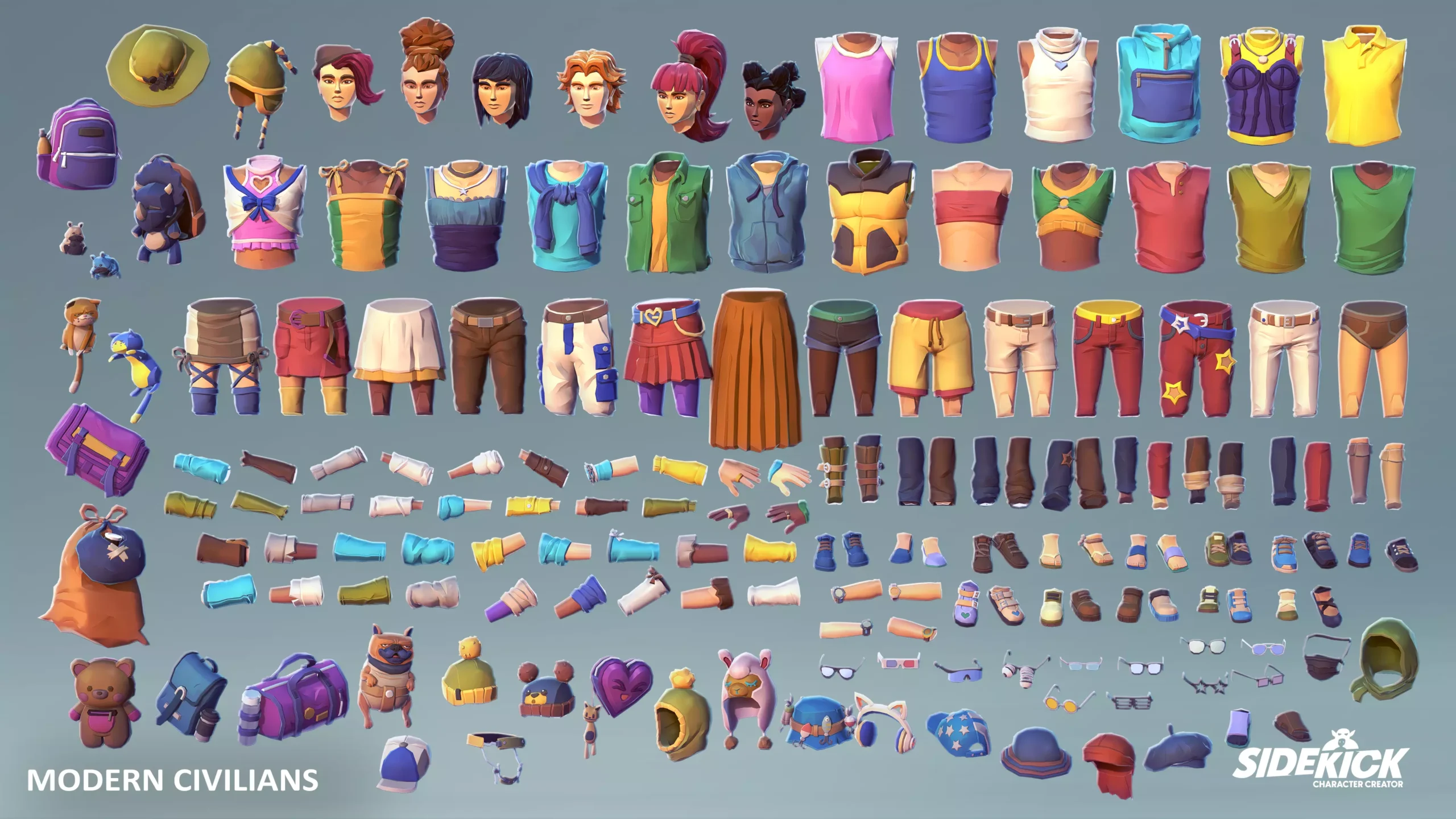 - 160+ modular, rigged Modern Civilian parts (clothing, hair and more)